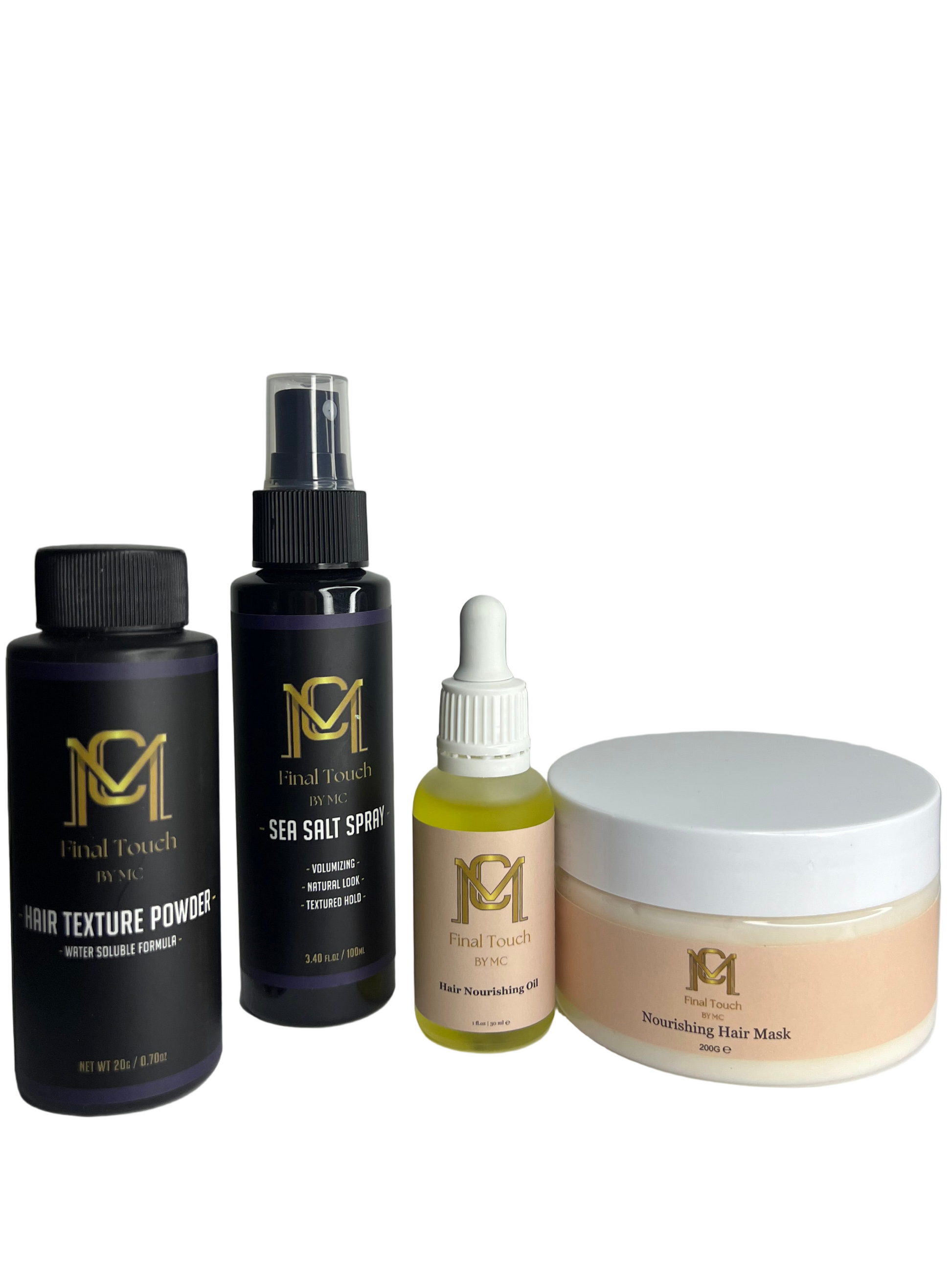 This exclusive bundle is the perfect way to experience everything Final Touch by MC has to offer — whether you’re styling, hydrating, or repairing.